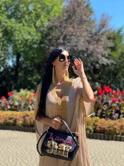 Helle Jalabiya, goldene arabische Kaftan, Abendkleid mit goldenen Gürtel in Taille innen