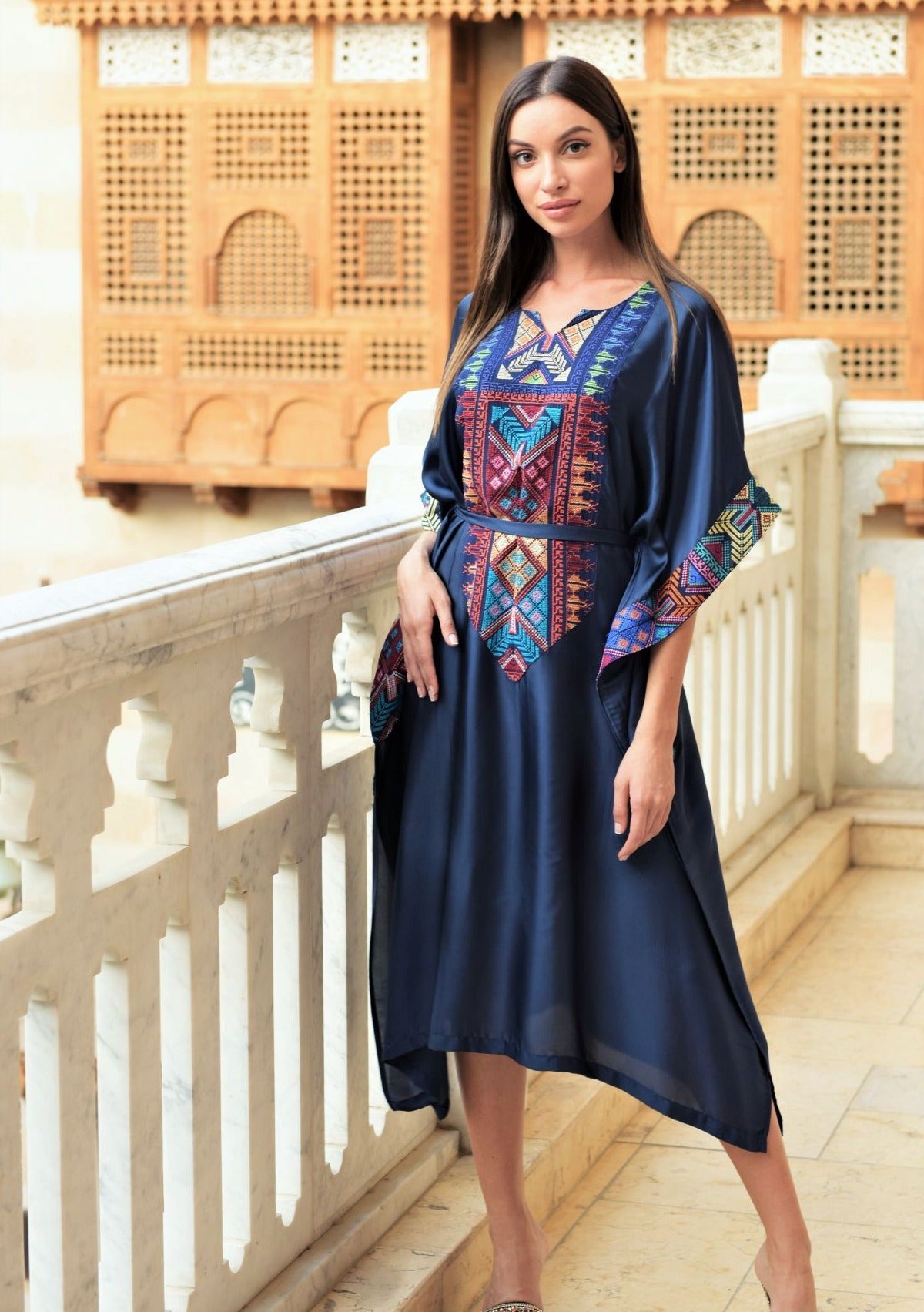Tunic Dress seta con ricamo con cintura